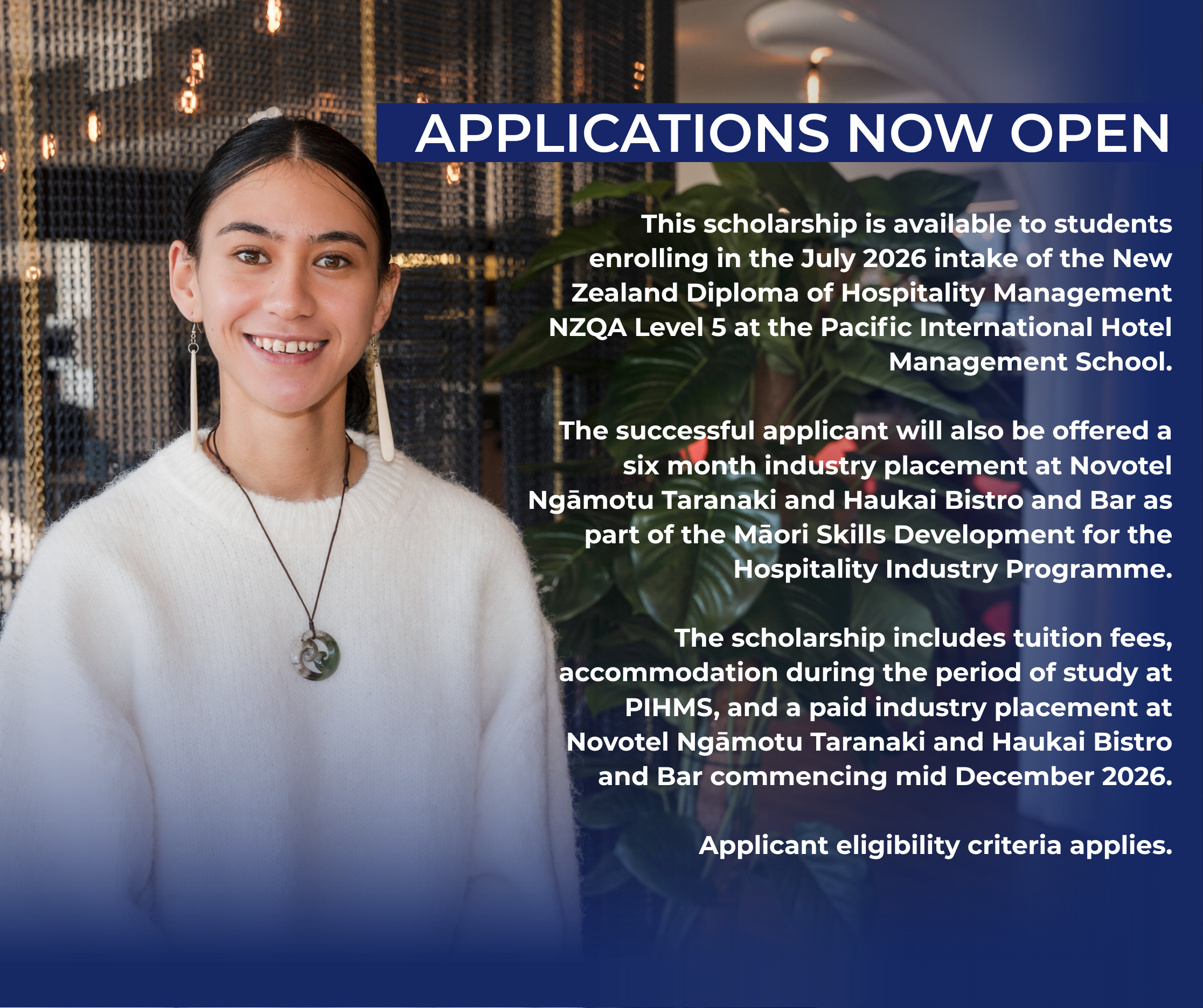 This scholarship is available to students enrolling in the JULY 2026 intake of the New Zealand Diploma of Hospitality Management NZQA Level 5 at the Pacific International Hotel Management School.